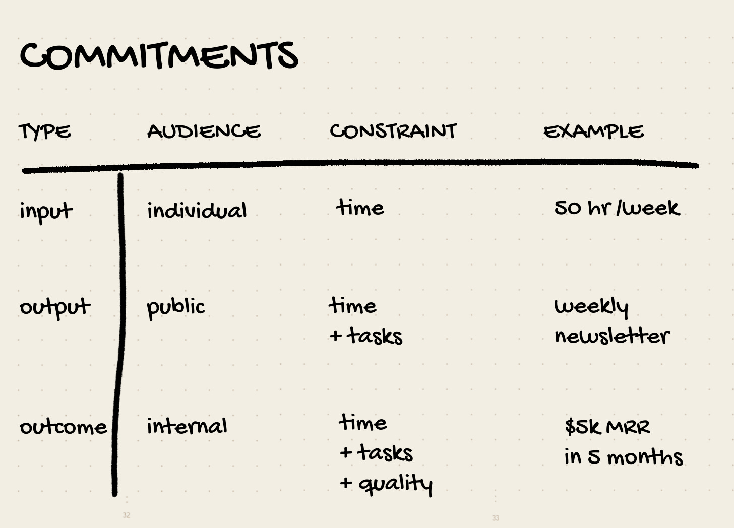 Before committing to a bold outcome like becoming a millionaire within 5 years, focus on an input commitment like deep-working for 2 hrs a day.