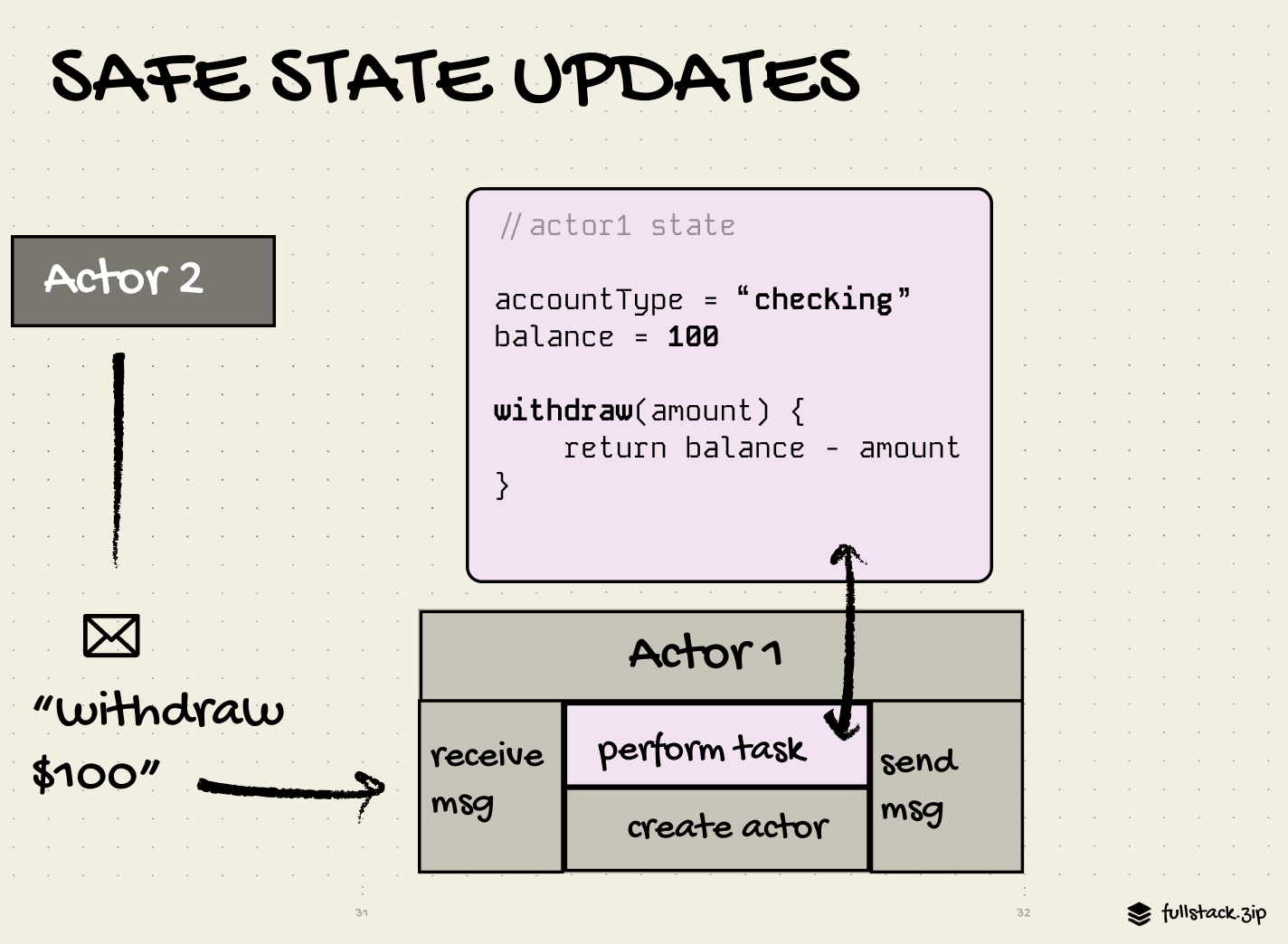 1. Each actor owns its state (no one else can directly mutate it)