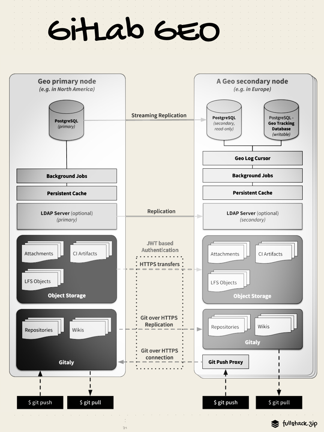 | Geo | Multi-site replication. Secondary sites mirror the | Ruby/Go |