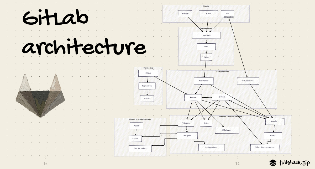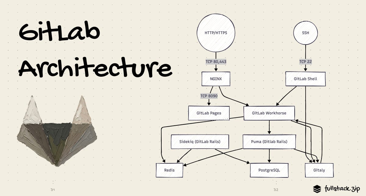 This article traces the path from your git push command to the DB and back, ending with an explainer of how GitLab monitors all of it in prod, and where the architecture is headed.
