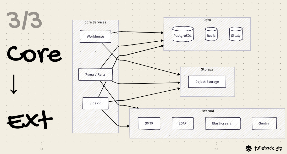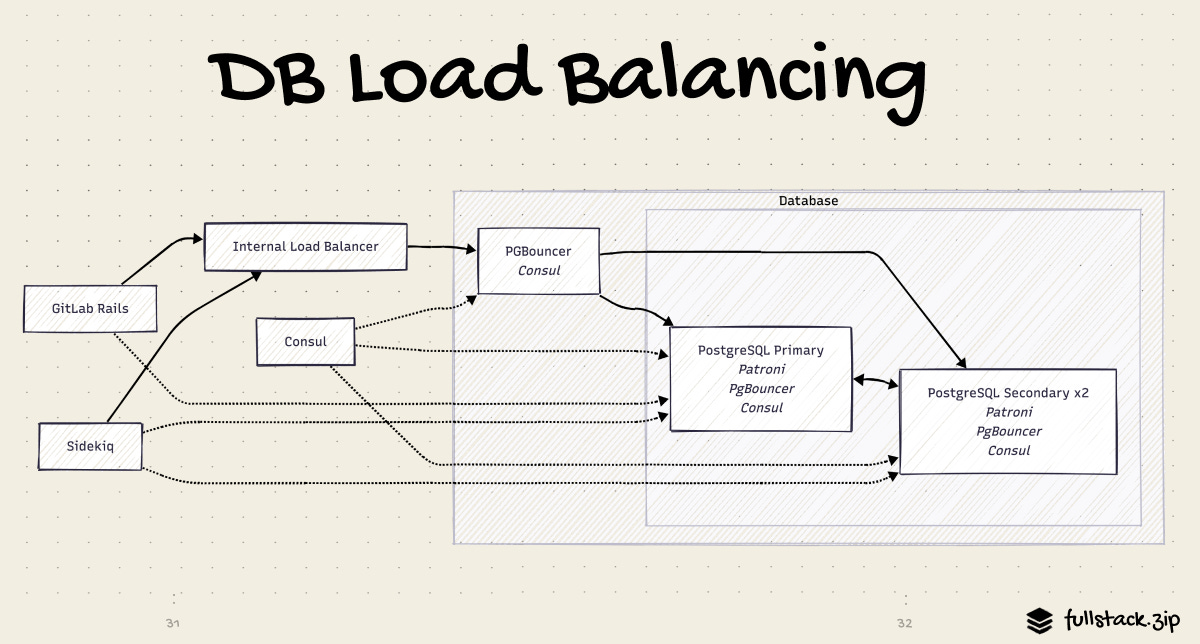The most interesting part about GitLab’s architecture is what isn’t there. No Kafka. No event sourcing. No distributed saga coordinator. No fancy message bus (yet). Their Z-axis scaling is being solved not with sharing but with what is essentially “run more copies of the whole app” lol.